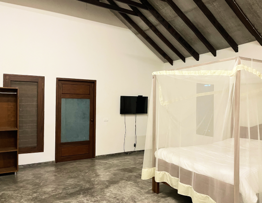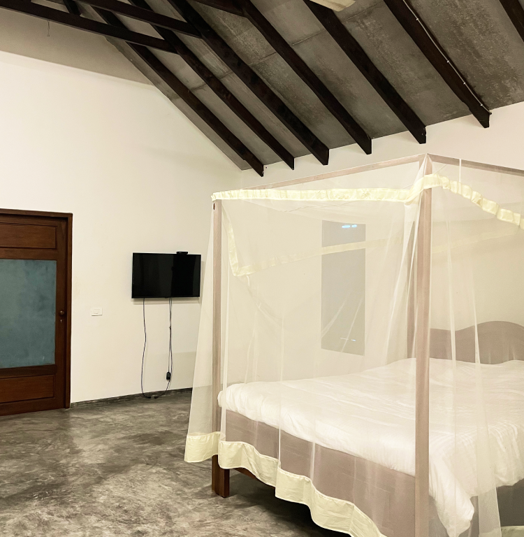 Spacious Karaikudi style bedrooms with natural lighting, wooden